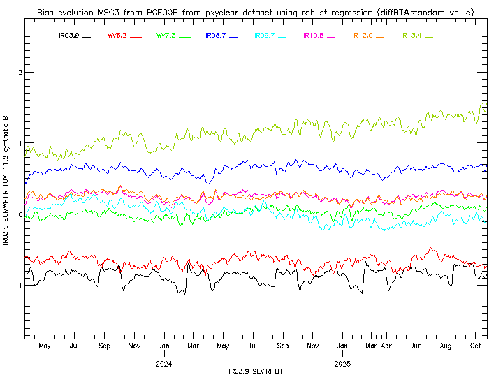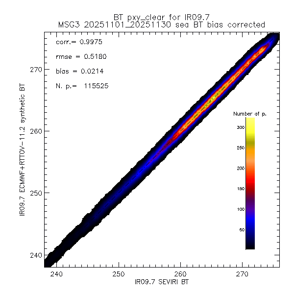 Bias BT correction coefficients for NWC SAF version 2016 using NWP (ECMWF) data in Pressure Levels