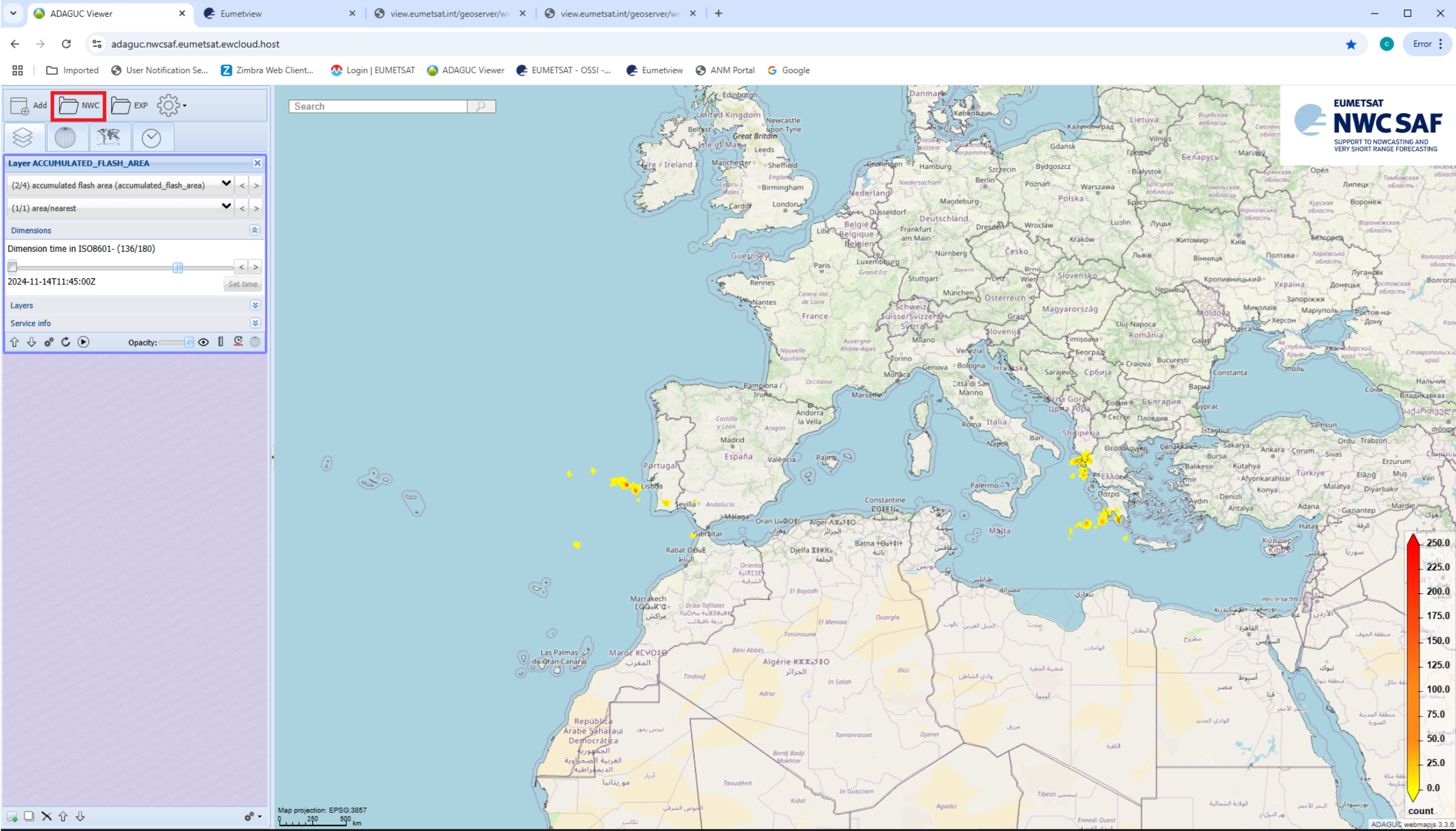 A Python prototype has been already implemented on the European Weather Cloud (EWC) and its results (for the last 3 hours, 10 minutes accumulations) are available by accessing: ADAGUC Viewer.
